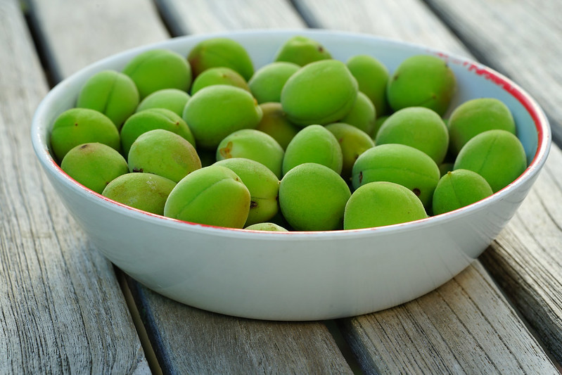 Ume or Japanese apricots are from the Prunus mume tree prolific in Asia. The flowers of the tree are plum blossoms that blossom during late winter and early spring. Ume is regarded as a seasonal symbol in Japan. The Prunus mume tree species is related to plum and apricot trees. Ume is known for its unique sour taste and is rarely eaten straight from the tree. Ume fruit is commonly used to make umeboshi pickles and is an ingredient in many Japanese dishes.