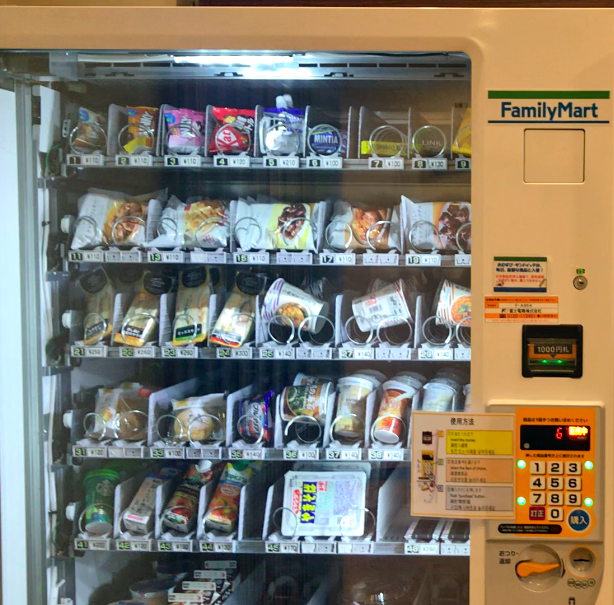 As I was walking to class one morning, I spotted a rather large vending machine on the side of the street that appeared to be selling some sort of food. As I was equal parts curious and hungry, I decided to investigate. To my delight, it turned out to be a snack vending machine! Specifically, it was a noodle vending machine! Before me lay roughly a dozen options, ranging from udon noodles to ramen. I hurriedly pulled out a spare bill from my pocket and inserted it, selected a ramen option. Less than a minute later, I was walking down the street, happily slurping noodles to my class.